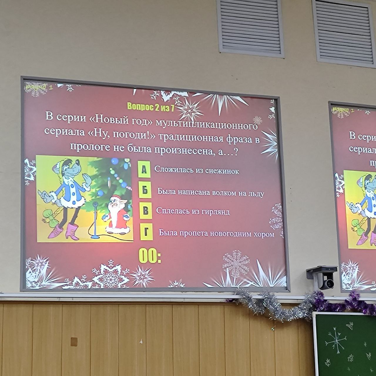 КВИЗ состоял из 5 раундов: разминка, логика, зимний дайвинг, медиа и ва-банк. Темы вопросов: всё, что связано с Новым годом. Самым сложным оказался вопрос про новогодний плакат, висевший на здании Краснодарского вокзала, который поздравлял пассажиров с «прибывающим» Новым годом. Но зато все узнали голос Елены Малышевой, которая поздравляла с Новым Годом в медиа раунде.