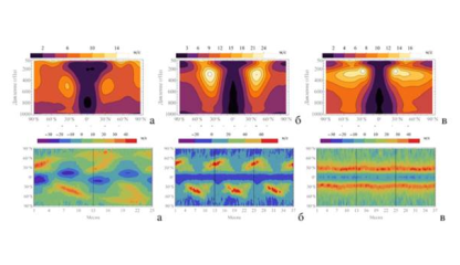 Выполнен сравнительный анализ структуры и динамики общей циркуляции атмосферы и бароклинных волн для идеализированных, азимутально-однородных планет, позволивший оценить влияние вариаций среднеширотных...