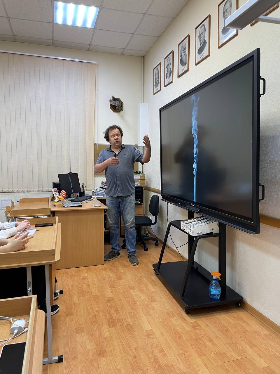 В рамках научно-популярных мероприятий для базовых школ РАН в.н.с. ИМСС УрО РАН (филиал ПФИЦ УрО РАН), профессор РАН, доктор физико-математических наук Степанов Родион Александрович выступил с лекцией для учеников МАОУ «Гимназии №4 имени братьев Каменских» и МАОУ «Гимназия №17» г. Перми «Турбулентность – это интересно (и не страшно)».