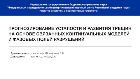 Косов Д.А. - Прогнозирование усталости и развития трещин на основе связанных континуальных моделей и фазовых полей разрушений