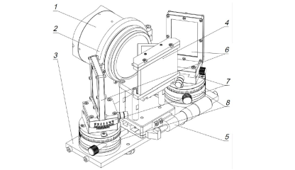 Актуальной задачей в области авиадвигателестроения является упрочнение тонких кромок лопаток ГТД методом лазерной ударной обработки (ЛУО). Рис.1 – (а) внешний вид и основные узлы (вид без защитного кожуха): 1 – оптико-технологическая голова; 2 – хомут, 3 – платформа, 4 – призма на стойке, 5 – устройство линейной...