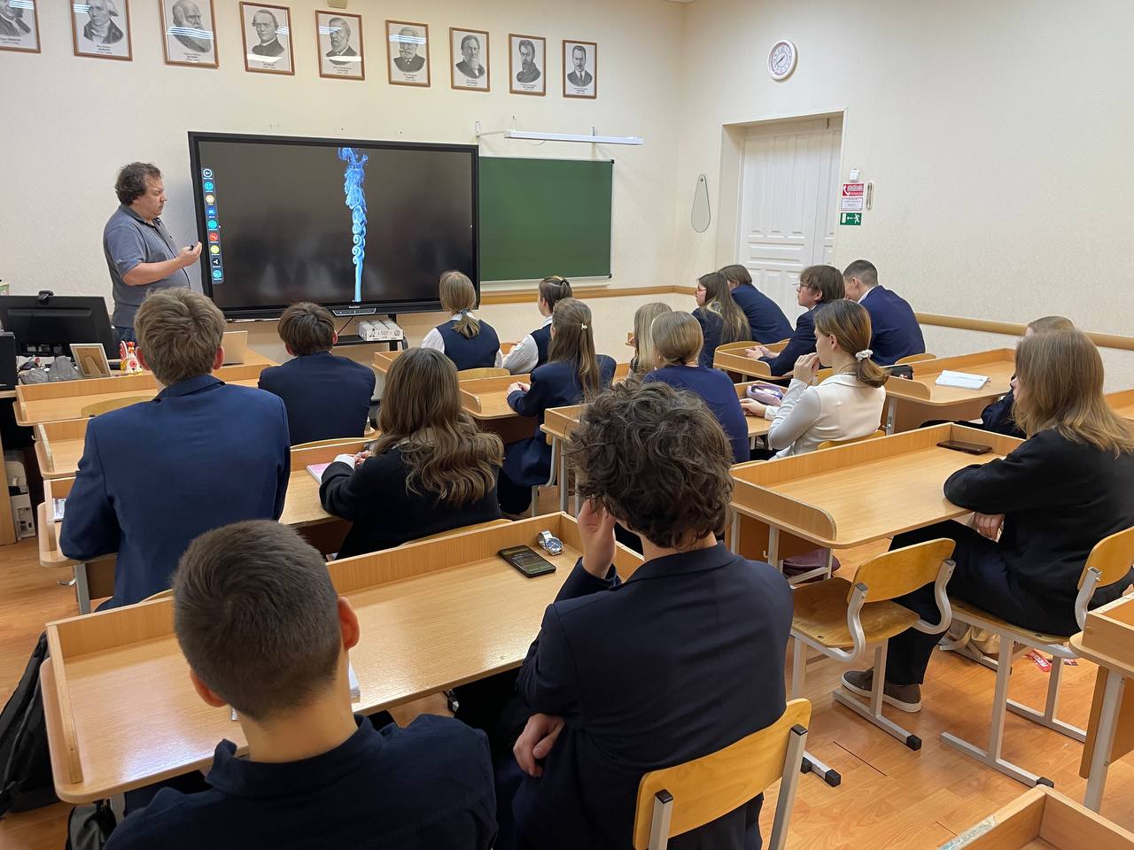 В рамках научно-популярных мероприятий для базовых школ РАН в.н.с. ИМСС УрО РАН (филиал ПФИЦ УрО РАН), профессор РАН, доктор физико-математических наук Степанов Родион Александрович выступил с лекцией для учеников МАОУ «Гимназии №4 имени братьев Каменских» и МАОУ «Гимназия №17» г. Перми «Турбулентность – это интересно (и не страшно)».